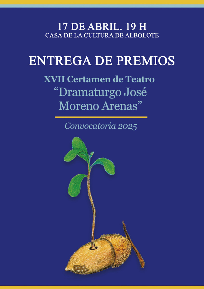 La Casa de la Cultura de Albolote será el escenario este viernes 17 de abril, a las 19:00 horas, de la entrega de premios del XVII Certamen de Teatro “Dramaturgo José Moreno Arenas”, una cita consolidada dentro del panorama cultural del municipio.