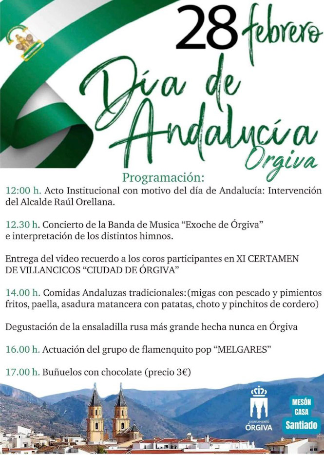 El alcalde de Órgiva, Raúl Orellana, ha invitado “a todos los que lo deseen a participar de este día en el que los orgiveños también conmemoramos la celebración del referéndum del año 1980 que dio autonomía plena a nuestra comunidad andaluza, una fecha que simboliza el reconocimiento del pueblo andaluz dentro de España”.
