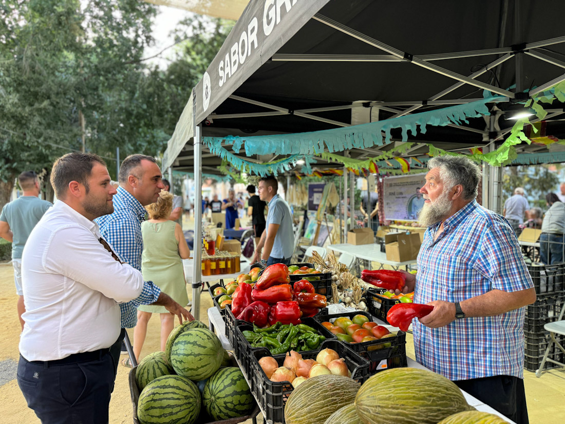 El alcalde de Alhendín, Francis Rodríguez, acompañado del concejal de Medio Ambiente, Cristian García, han visitado los expositores instalados para conocer de primera mano las propuestas ofrecidas por los agricultores, en una "clara apuesta" por el mundo rural que ya se ha consolidado en la localidad como antesala de las Fiestas Grandes desde este jueves.