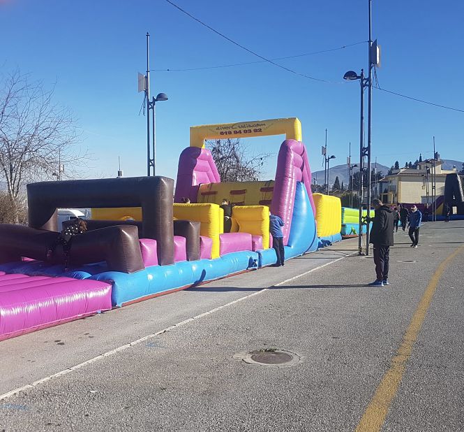 Cientos de niños de La Zubia disfrutan de un gran circuito hinchable de 150 metros de longitud