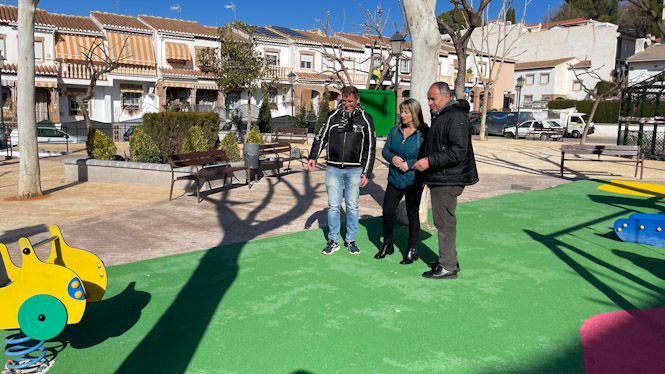 Entre las mejoras realizadas, que han supuesto una inversión de 95.064,99 euros, se encuentra la sustitución de las baldosas por un suelo a base de hormigón impreso de 15 cm. de espesor, la instalación de un pavimento de caucho en la zona de juego infantil, la elevación de los muretes de los alcorques y una mejora de la jardinería, así como la restauración de la pérgola y los columpios existentes en la plaza.
