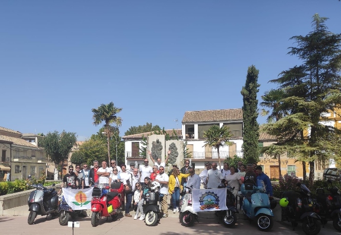 Más de medio centenar de amantes de las míticas motos Vespa han participado en una Ruta de Federico García Lorca organizada por Vespa Club Granada y el Ayuntamiento de Fuente Vaqueros, que los ha llevado a visitar esta localidad.