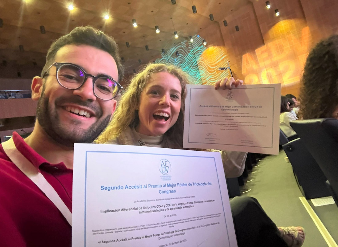 El Servicio de Dermatología del Hospital Universitario Clínico San Cecilio de Granada ha sido distinguido con un accésit al mejor póster en el área de Tricología durante el 52º Congreso Nacional de Dermatología y Venereología celebrado en Valencia del 7 al 10 de mayo de 2025. La Academia Española de Dermatología y Venereología (AEDV) ha concedido este reconocimiento al trabajo titulado "Implicación diferencial de linfocitos CD4+ y CD8+ en la alopecia frontal fibrosante: un enfoque inmunohistológico y de aprendizaje automático".