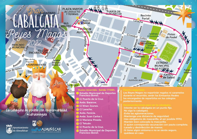 Por otro lado, entre las recomendaciones que realiza la Concejalía de Cultura y Fiestas para ver la Cabalgata de Reyes se sugiere: "Intentar ver la Cabalgata en un lugar fijo. No seguir la cabalgata. Evitar las aglomeraciones. Mantener la distancia de seguridad. Usar siempre mascarilla y si es posible FFP2. Mantener siempre la mascarilla bien puesta. A quien corresponda se recomienda que acudan con vacunación con pauta completa. Lavado y desinfección de manos. Si tiene algún síntoma, quédese en casa. Y si no se siente seguro o no quiere participar, quédese en casa. Son eventos con asistencia voluntaria", señala