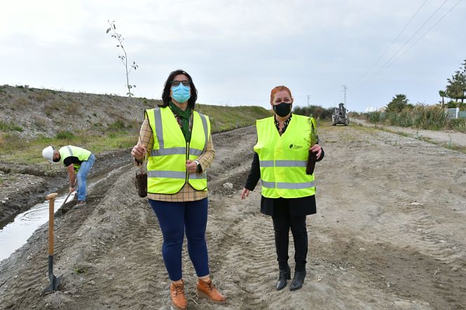 Durante la visita a la zona, la delegada y la alcaldesa de la localidad, María Eugenia Rufino, participaron en la plantación de plantas autóctonas en las riberas del río Guadalfeo, una de las actuaciones del proyecto que tienen como finalidad naturalizar el entorno con más de 4.000 plantas.