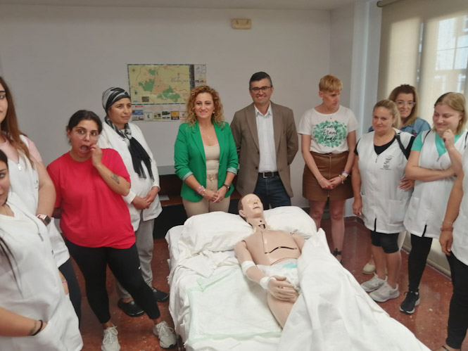 Siendo el principal sector económico la agricultura, centrada en pequeñas explotaciones familiares de subtropicales e invernaderos, la atención sociosanitaria se ha convertido en la segunda fuente de generación de empleo de la localidad. Con un total de 2.731 habitantes, 764 tienen más de 65 años y 90 de ellos son usuarios del servicio de ayuda a domicilio, que cuenta con una plantilla de 17 auxiliares y una bolsa para cubrir las vacantes. “Con ella solemos atender todas las necesidades tanto del personal como de los usuarios pero siempre nos hace falta más trabajadores puesto que la demanda del servicio va en aumento”, ha explicado la alcaldesa. El Consistorio cuenta además con un programa de atención a mayores “que solemos desempeñar a través de un PFEA especial y que nos sirve para atender sus necesidades mientras se les resuelven sus expedientes de dependencia”, un servicio público complementario donde también pueden encontrar una salida profesional las alumnas del curso de FPE que culmina hoy.