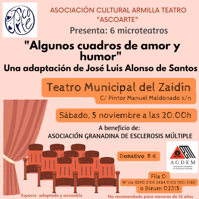 La Asociación Cultural Armilla Teatro "Ascoarte" representará seis microteatros en beneficio de la Asociación Granadina de Esclerosis Múltiple