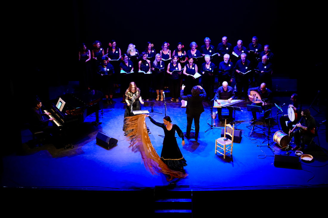 El concierto fue un viaje musical que conectó con el público a través de la voz clásica árabe de Samira Kadiri y la danza flamenco-mediterránea de Laura García Fernández-Calienes, junto a la interpretación del Coro de Cámara de Granada y la fusión al piano entre el libanés Moustafa Mattar y Ricardo Rodríguez Cuadros. La atmósfera se enriqueció con instrumentos mediterráneos como el laúd y el qanun, y guiños a Federico García Lorca y la tradición andaluza, culminando con una ovación de pie y un canto colectivo de “La Tarara”, símbolo de la diversidad cultural y el espíritu inclusivo del festival.