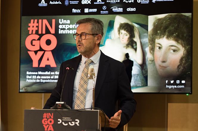 El delegado territorial de Turismo de la Junta en Granada, Gustavo Rodríguez, ha asistido esta mañana a la presentación de la exposición INGOYA que abrirá sus puertas el próximo 22 de marzo en el Palacio de Exposiciones y Congresos de Granada.