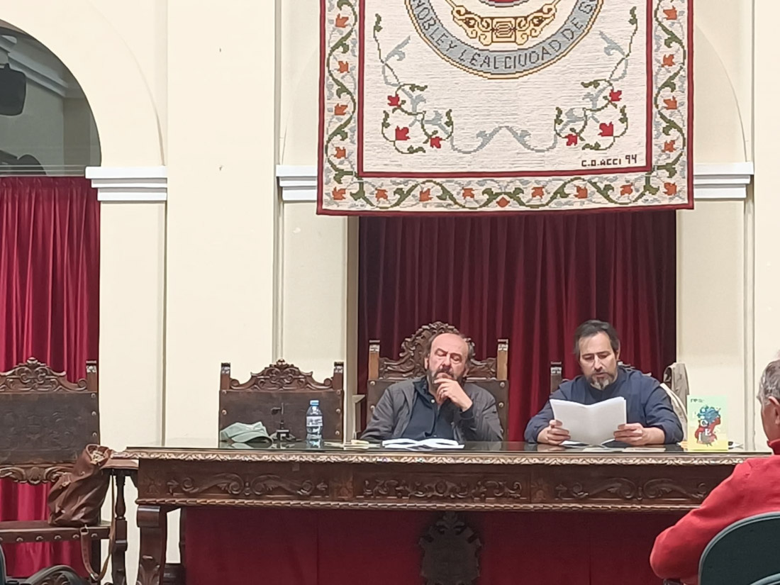 Guadix volvió a ser sede de un Festival Internacional, gracias a la colaboración de la concejalía de Cultura del Ayuntamiento de Guadix, representada por Encarni Pérez, y la delegación de Cultura y Educación de la Diputación Provincial de Granada. Este jueves nuestra ciudad participó en el XXI Festival Internacional de Poesía de Granada que se celebrará en la capital granadina del 5 al 9 de mayo, con el recital poético de Davide Rondoni, una de los poetas más reconocidos en Italia y a nivel internacional, en un acto donde fue presentado por Juan José Castro, que ha sido galardonado recientemente con el Premio Andalucía de la Crítica de la poesía. El acto comenzó en el Mirador de la Magdalena, pero el fuerte viendo que se levantó hizo que se trasladara al patio del Ayuntamiento de Guadix, donde ambos poetas demostraron su maestría al público presente, entre los que se encontraba la concejala de Cultura, Encarni Pérez.