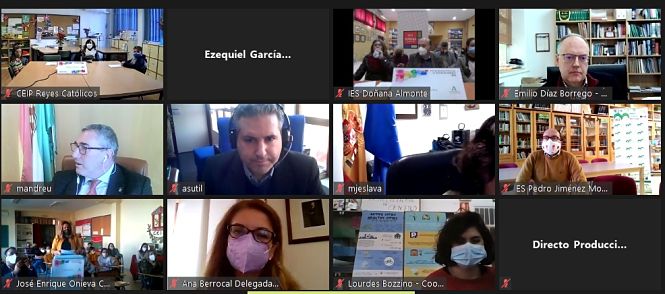Junto con la delegada territorial de Educación y Deporte en Granada, también han participado en el encuentro virtual la secretaria general de Educación y Formación Profesional, Olaia Abadía; la directora general de Ordenación y Evaluación Educativa, Aurora María Auxiliadora Morales, la Jefa de Servicio de Programas Educativos Internacionales, Dª Carmen Mellado y los delegados territoriales de Educación y Deporte de Cádiz, Jaén y Sevilla, Miguel Andreu, Antonio Sutil y María José Eslava.