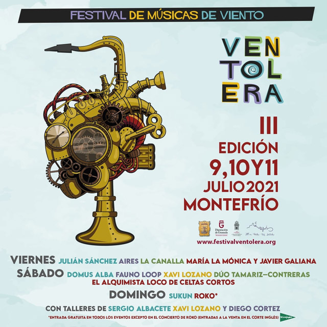 El concejal de Cultura del Ayuntamiento de Montefrío, Miguel Ángel Camacho, ha señalado que el programa completo del festival Ventolera está disponible en la página web https://www.festivalventolera.org/, y ha recordado que todas las actividades serán gratuitas hasta completar aforo, excepto el concierto de clausura, a cargo de Roko (acompañada con una gran banda y el ensemble de músicos de viento del Festival Ventolera), para el que las entradas ya están a la venta.