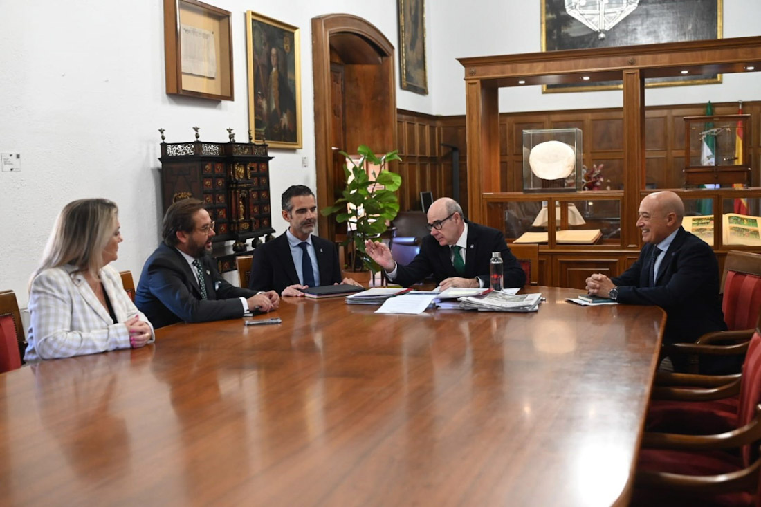 El consejero de Agricultura, Pesca, Agua y Desarrollo Rural, Ramón Fernández Pacheco, se reunió con el rector de la Universidad de Granada (UGR), Pedro Mercado, en el Rectorado ubicado en el Hospital Real para reforzar la colaboración entre la Junta de Andalucía y la UGR en investigación e innovación agroalimentaria. También participaron autoridades como Antonio Granados (delegado del Gobierno andaluz en Granada), Carmen Lidia Reyes (delegada territorial de Agricultura) y Miguel Ángel Guardia (gerente de la UGR).