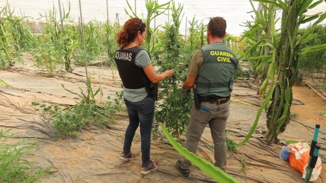 Agentes de la Guardia Civil y de Vigilancia Aduanera, en el marco de la operación Ingalla, ha descubierto una plantación de cannabis sativa en un invernadero de Salobreña, donde han intervenido 531plantas de cannabis sativa y medio kilo de marihuana dispuesta para la venta.