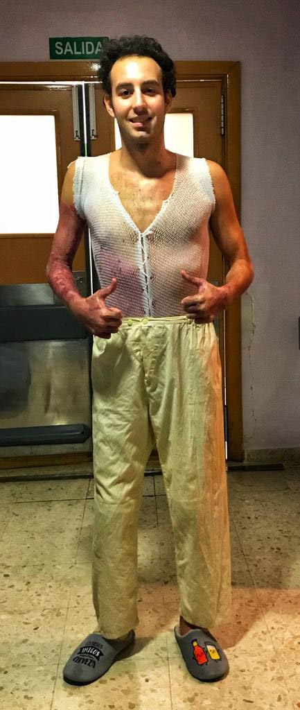 Álvaro es un joven madrileño de 28 años que en 2018 sufrió quemaduras en el 63 por ciento de su piel tras un grave incendio. Debido a las heridas, estuvo en coma 10 días y permaneció cuatro meses ingresado en el hospital Virgen del Rocío de Sevilla.